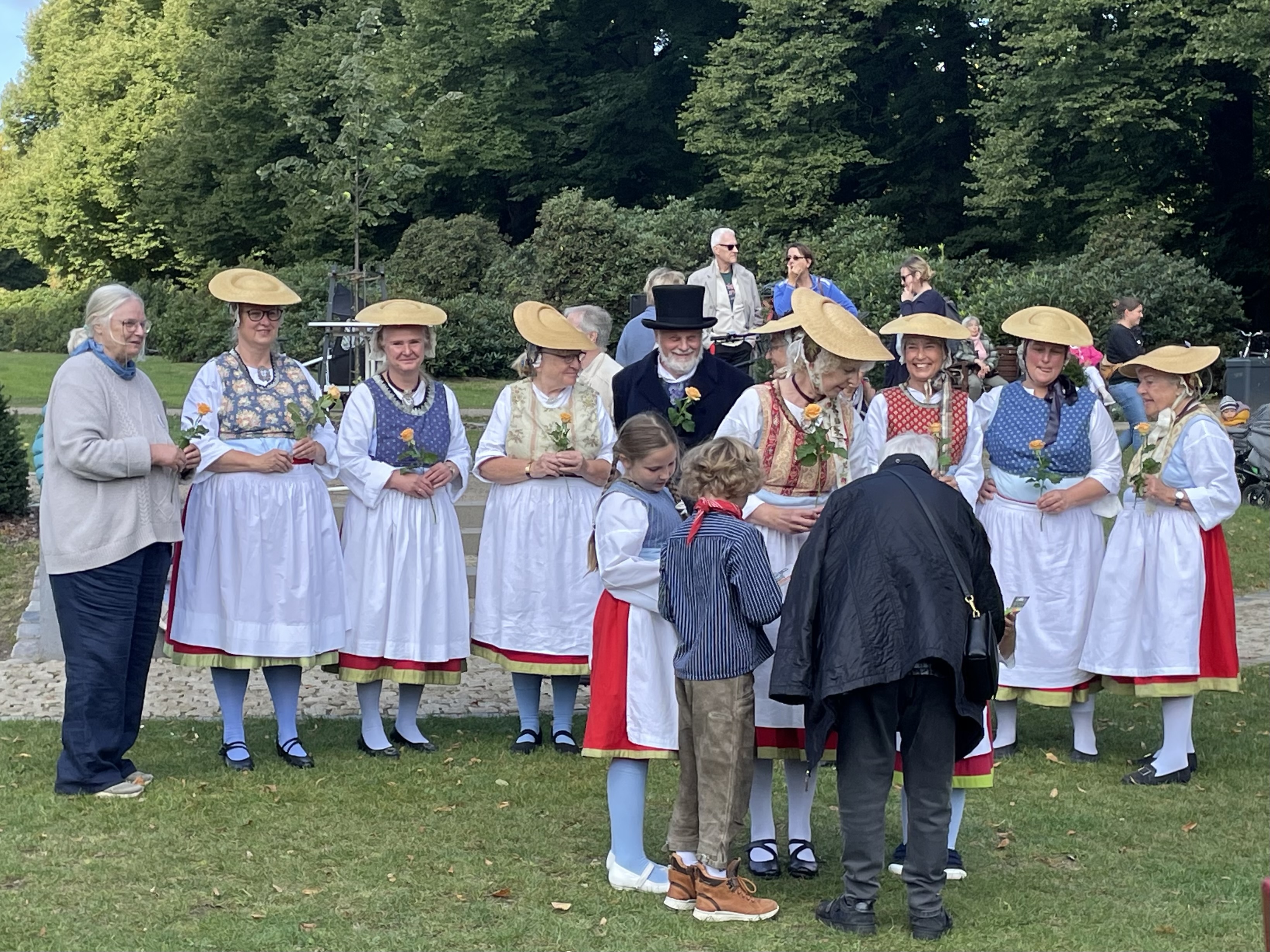 Dieses 100-jährige Jubiläum nahm der Hirschparkverein zum Anlass, die Hamburger zu einem großen Fest am 15. September einzuladen. Es gab Infostände, gartenhistorische und baumkundliche Führungen, ein Kinderprogramm, Kaffee und Kuchen, Musik und natürlich einen Auftritt der Blankeneser Trachtengruppe.